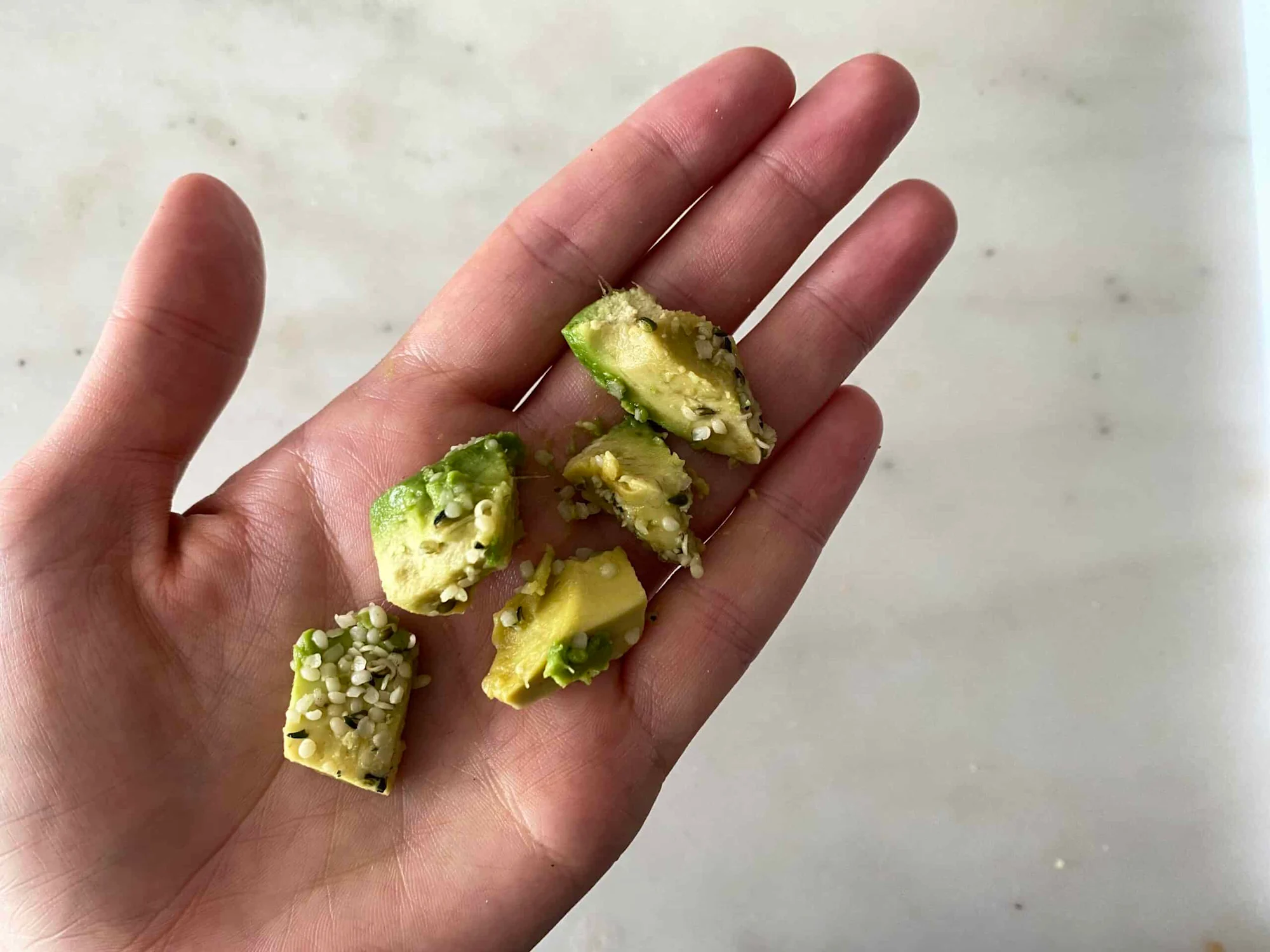 اگر قطعات آووکادو بهدلیل بافت نرم و لغزنده از دست کودک سر میخورند، میتوانید آنها را در دانههای شاهدانه یا پودر نارگیل بغلتانید تا بهتر در دست قرار بگیرند.